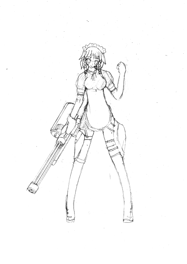 チルノとかいってたのに咲夜さんです。これはどうしたことか!いやシナリオ担当者に頼まれて、しかたなくです。次はおぜうさまか妹様のどっちかですね。たぶん妹様のほうです。咲夜さんの右手の物はガトリングガンですが、発射するのは銃弾ではなくナイフです。足の格納部も多分ナイフ入ってるとおもいます。