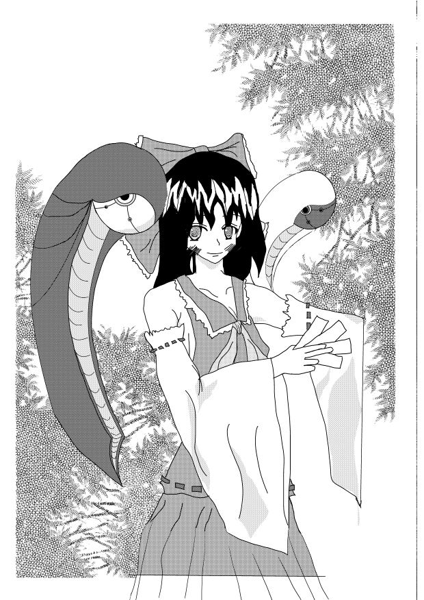 サークルカット完成です。といってもこの一部分しか使わなかったんですけどね。久しぶりにペンタブを手に取ったので疲れました。ハジの方が適当なのは、もしこれを表紙にするにしても使われない部分だからです。ちなみに背景はトーンを適当に一枚貼って終了の簡単なモンです。ま、それなりな味は出てるんじゃないでしょうか。